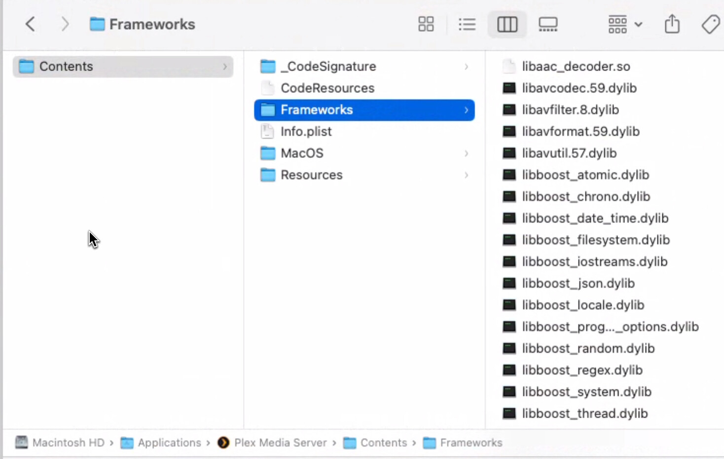 Hmm, I'm on macOS too. I don't think that's correct. I couldn't even find a "codecs" directory inside the package contents of the Plex Media Server app. Where did you find it?