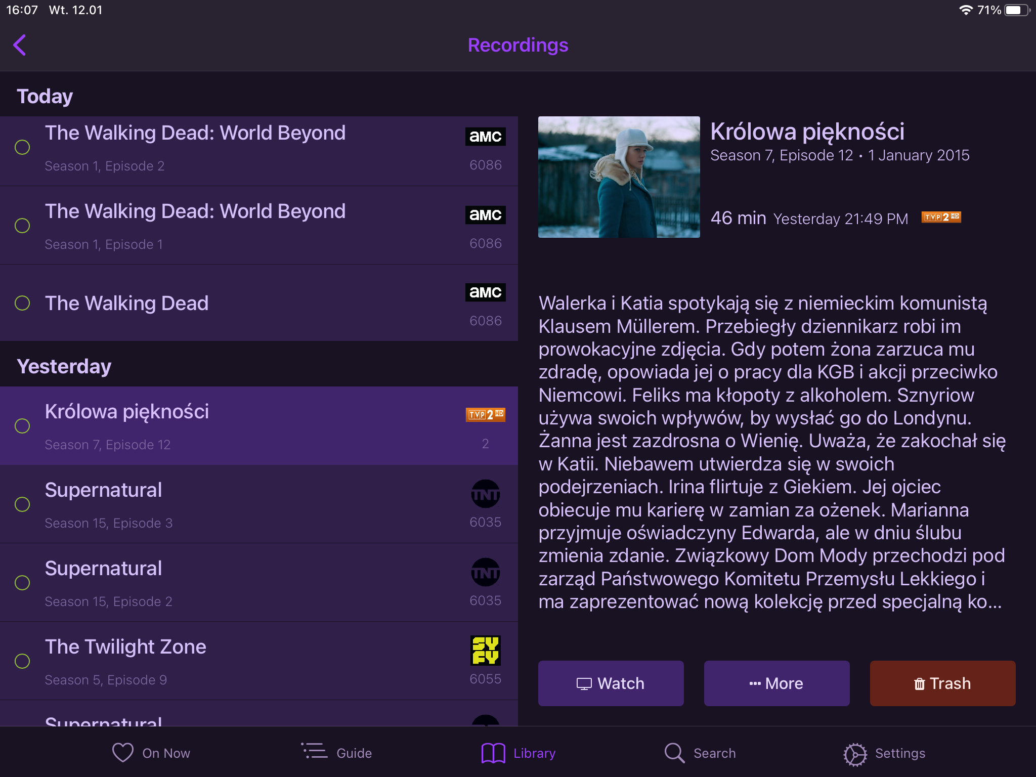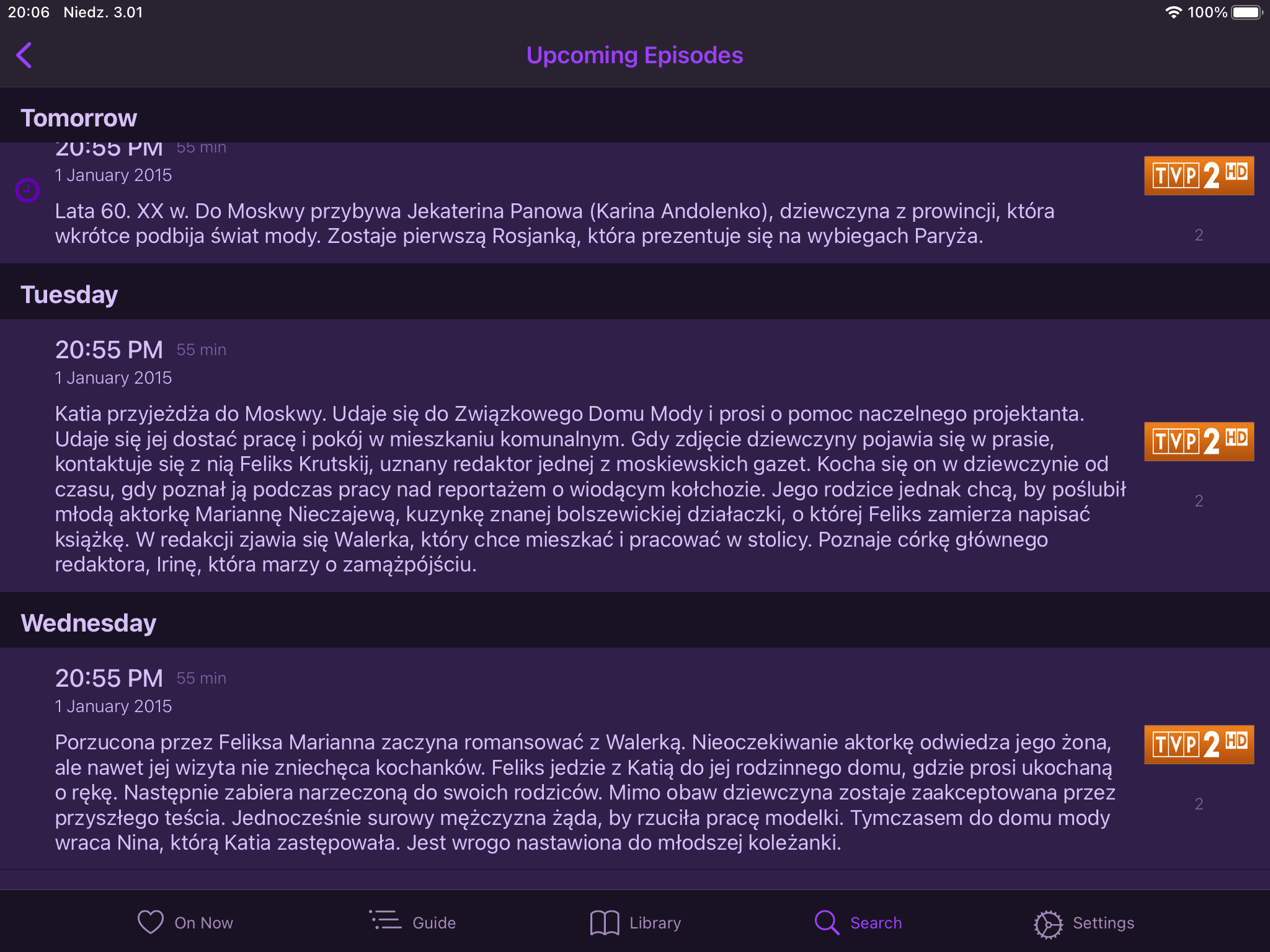 Even worse there is often wrong date of original airing and title of each episode in the guide is just title of the show. Here below is a screenshot for a "Królowa piękności".