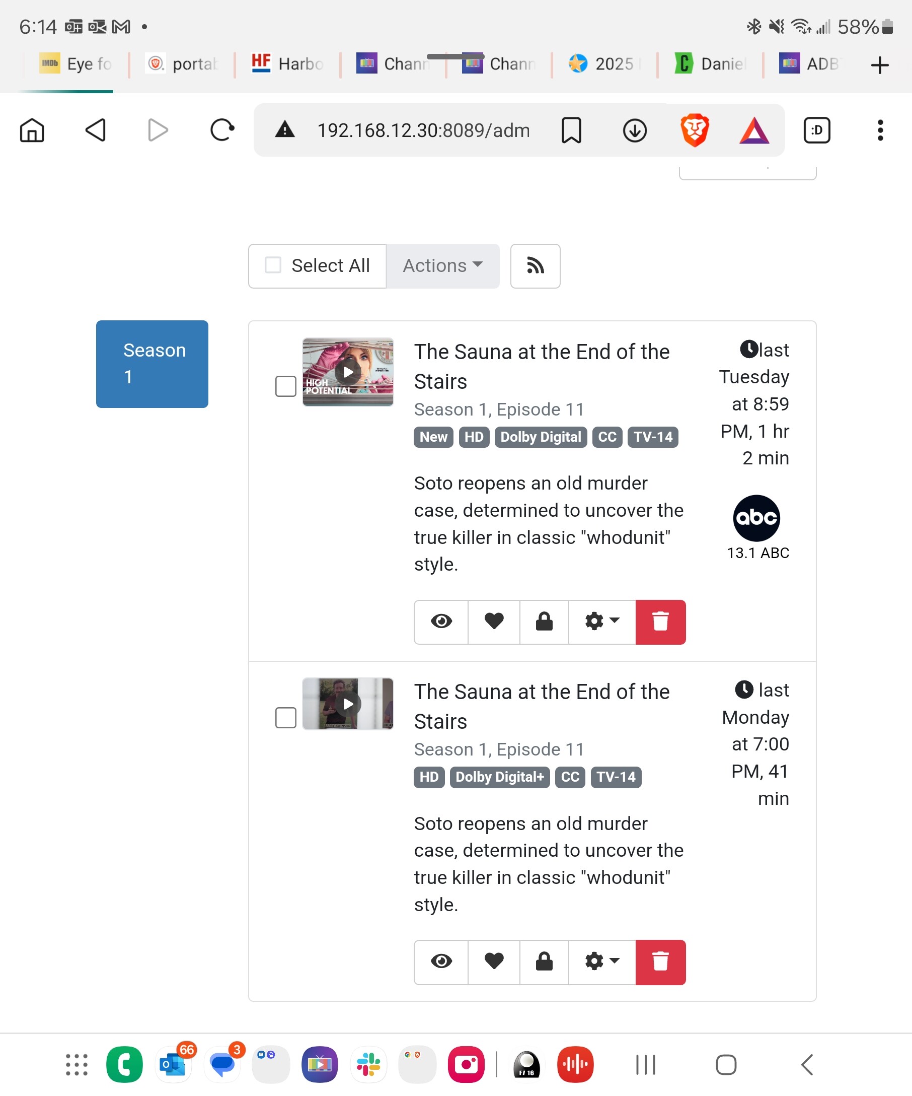 Error retrieving file #21827details: stat /media/channelsdvr/2TB/DVR/TV/High Potential/High Potential S01E11 The Sauna at the End of t 2025-01-28-2059.mpg: no such file or directory