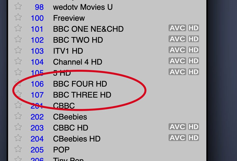 On my UK Freeview channels, HDHomeRun is missing the "AVC" and "HD" tags for a couple of HD channels.