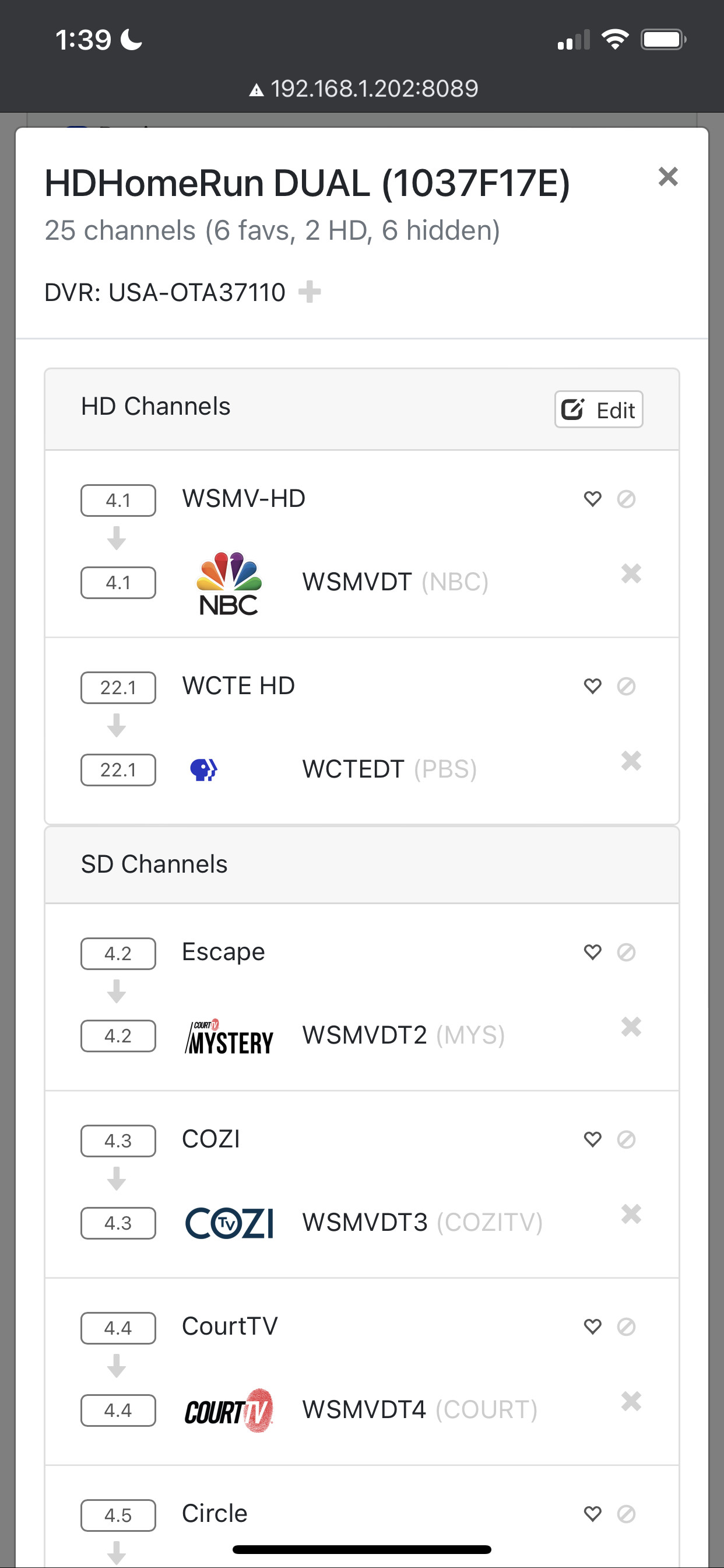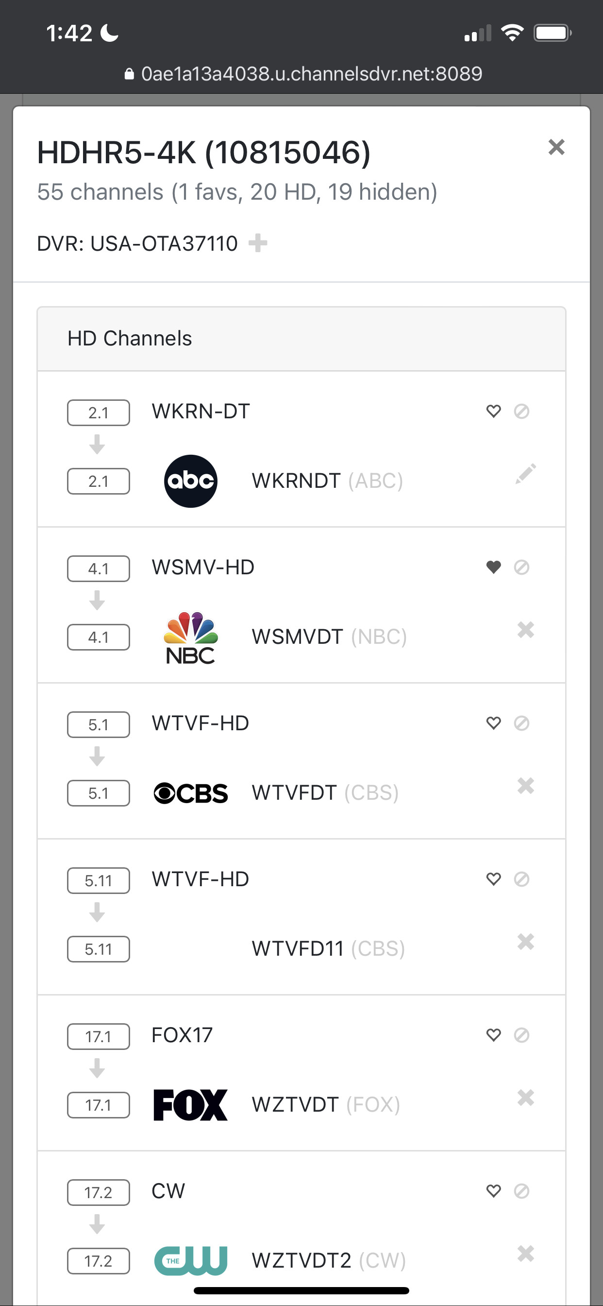Click the "123 channels" link under your HDHR and screenshot what's shown