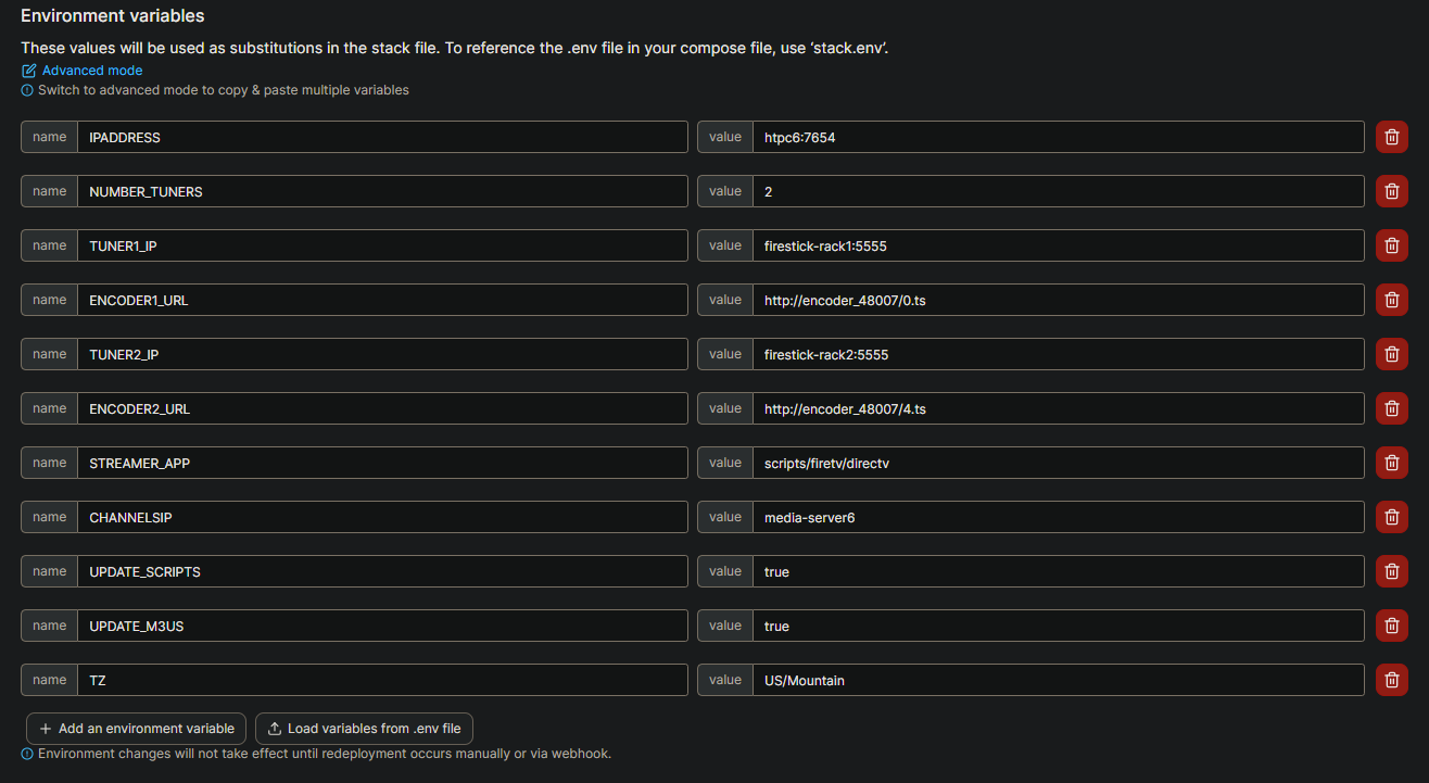 - TUNER2_IP=${TUNER2_IP} # Streaming device #2 with adb port in the form hostname:port or ip:port