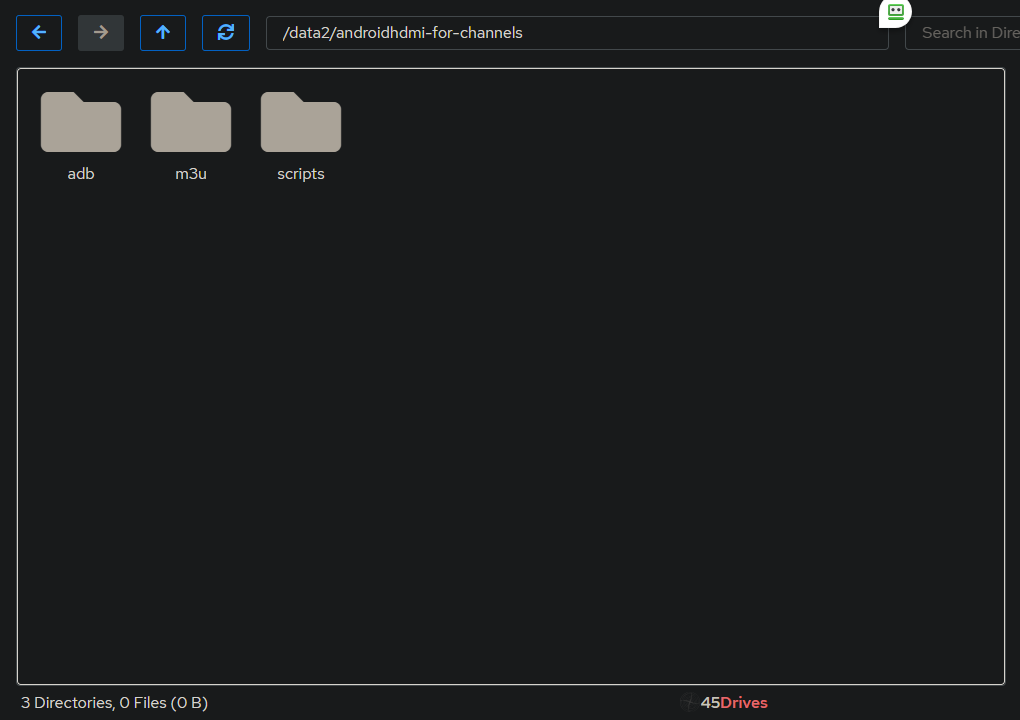 So, what we're going to do is move the adb directory under /data2/androidhdmi-for-channels. In addition, we're going to create a scripts directory there, and move whatever streamer directories you have (onn and firetv, in this example) under that new scripts directory. The html directory can be deleted. When you're done, it should look like this under /data2/androidhdmi-for-channels (or whatever directories you use as "parents"):