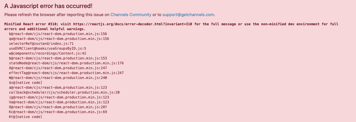 Clicking Shows under the Recordings side menu results in this error.