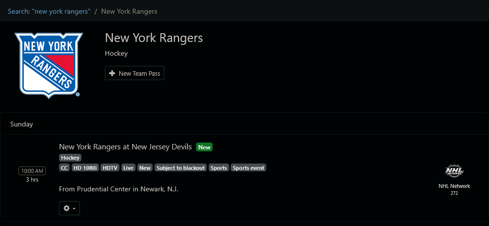 Trying to create a pass to just record NY Ranger games. Can someone help? Getting every hockey game!
