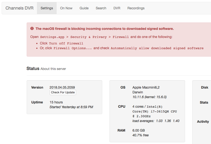 thirdly, is it the Firewall on the DVR host computer that Channels DVR is bitching about, or is it the Firewall on the laptop i'm using to connect to the DVR at the moment?