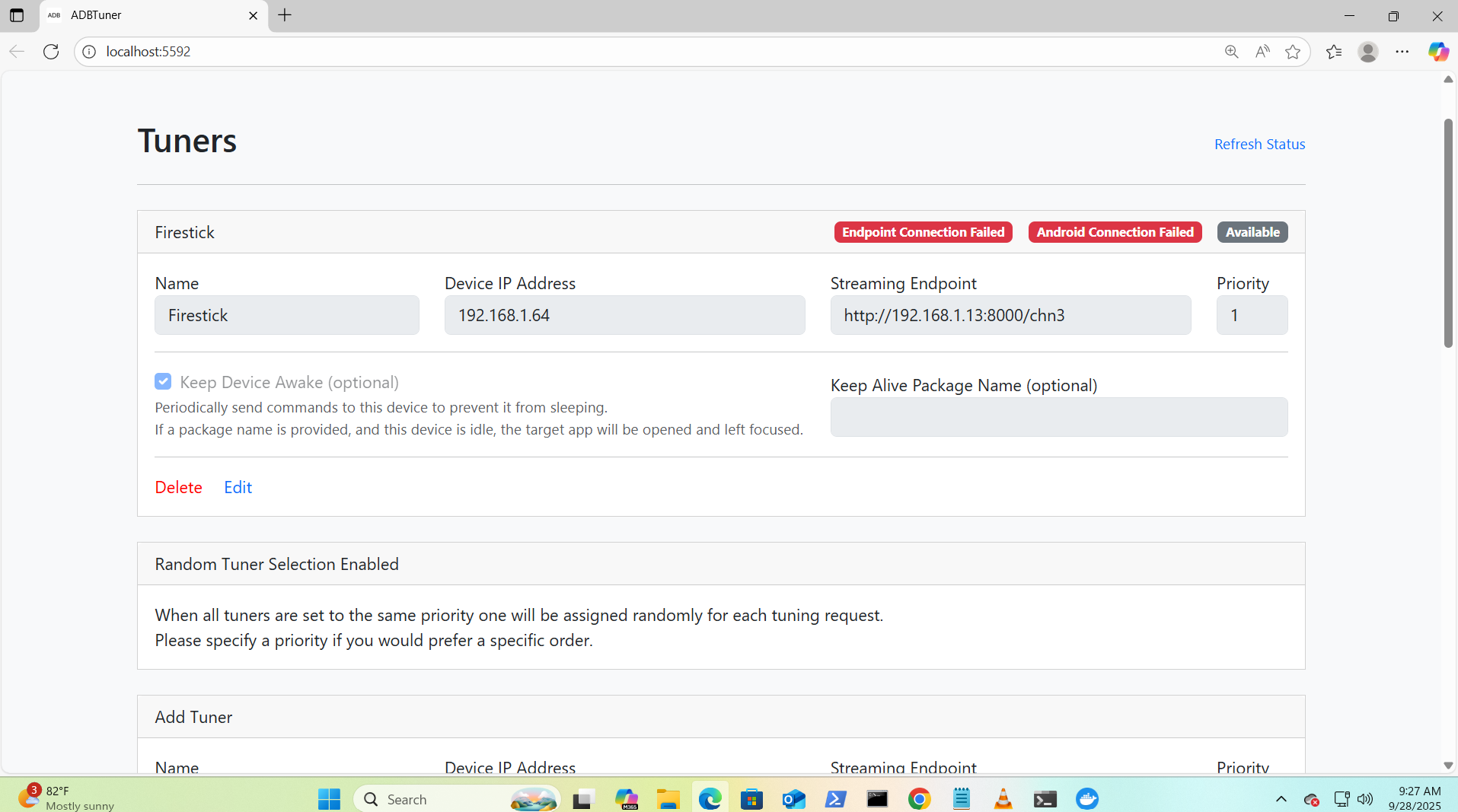 What Hardware are you using for your "tuners"? I am using a firestick and a Onn as my tuners and unfortunately neither connect, when trying to connect them with either adb tuner or by attempting to run the AH4C docker image. Additionally I get no GUI interface website for AH4C like I get for the adbtuner application it just shows that it installed correctly on portainer but I have no way to access it when I go to the corresponding url and port..