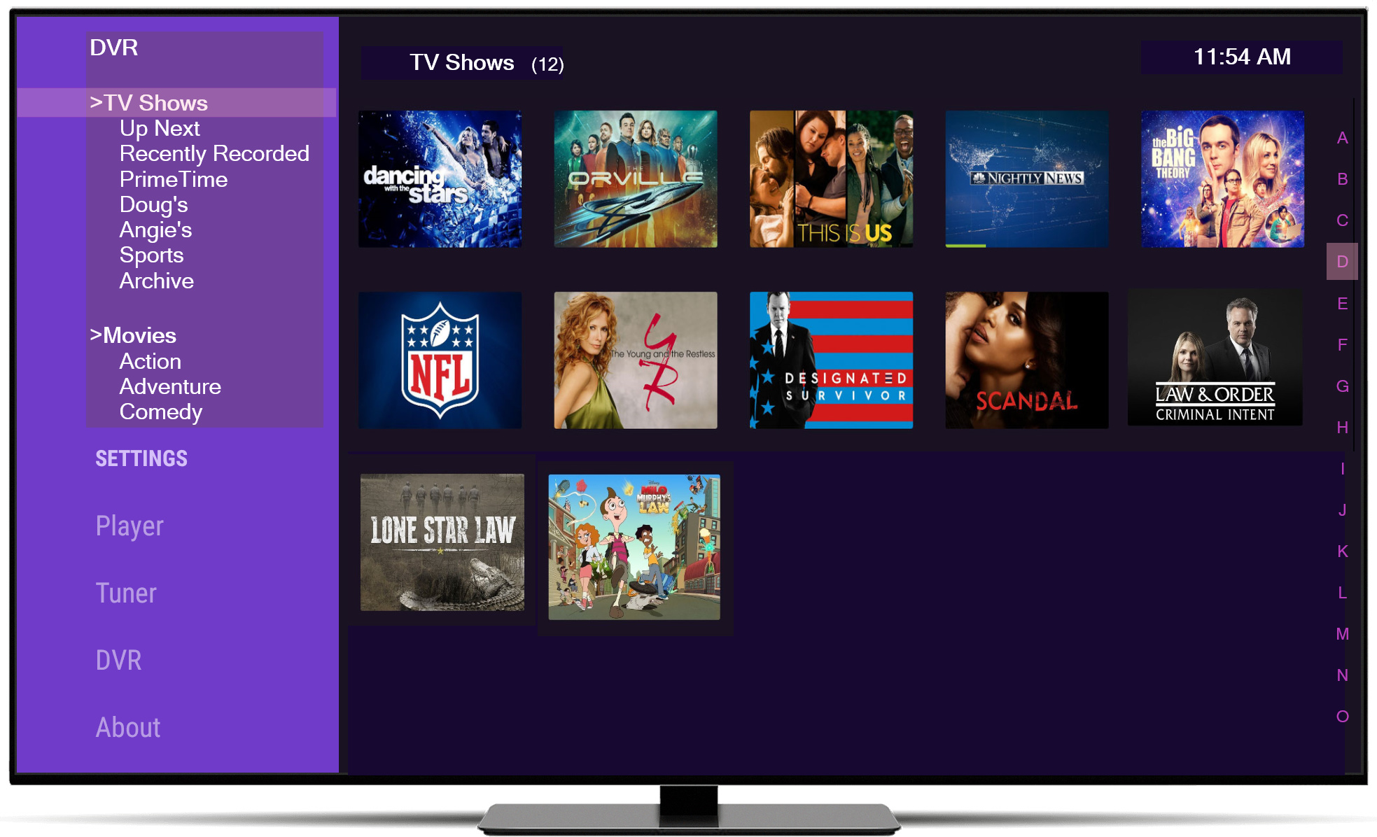 I’d like to suggest a change to the way the menu system works. My experience is coming from the Android TV Channels App on Nvidia Shield, but it appears the Apple interface is similar. The current setup is functional, but I find the “Up Next” and “Recently Recorded” sorting to have limited appeal once the number of TV shows I have recorded expands. It takes too many clicks of the remote to view all TV shows (unless I am missing some short-cut).