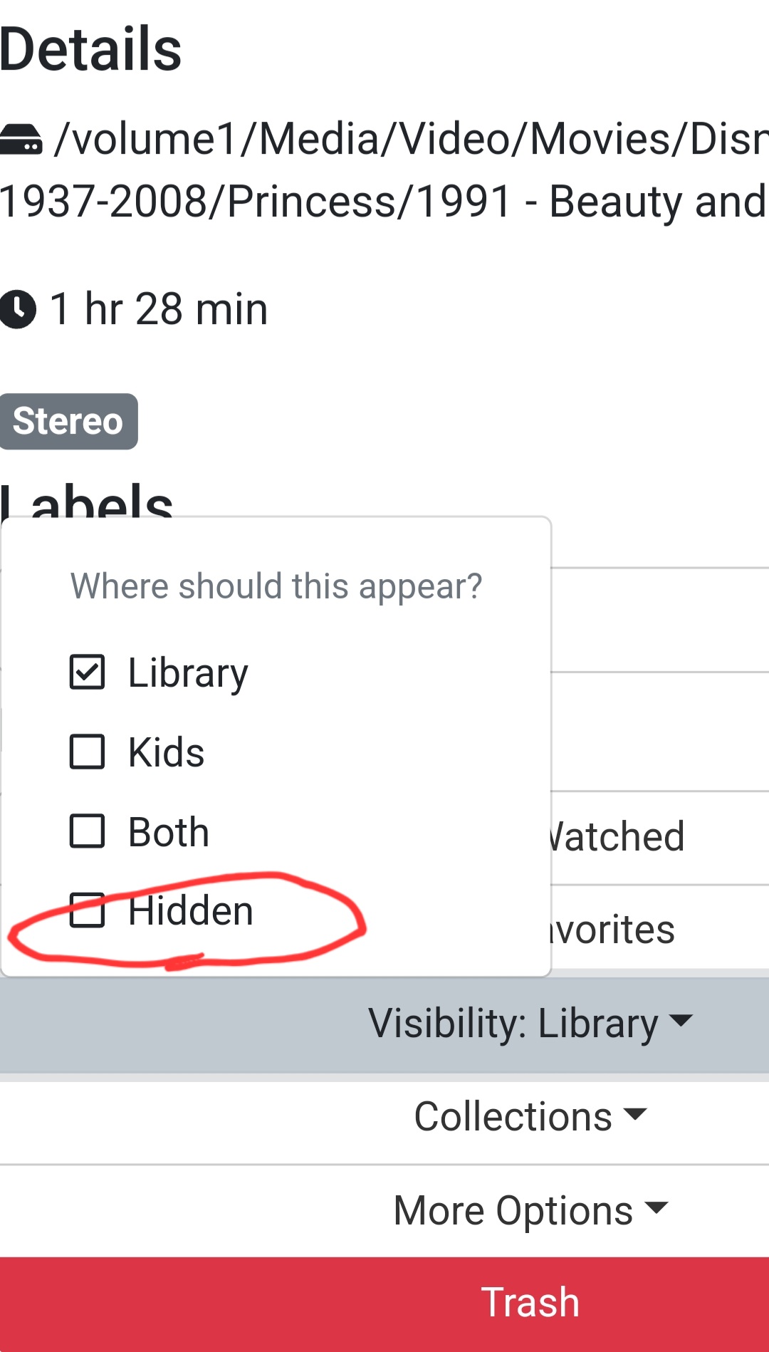 Another even better option would be if on the source page there was a drop down that would allow all content to be automatically put in one of the groups (Library/Kids/Hidden) during import/scan.