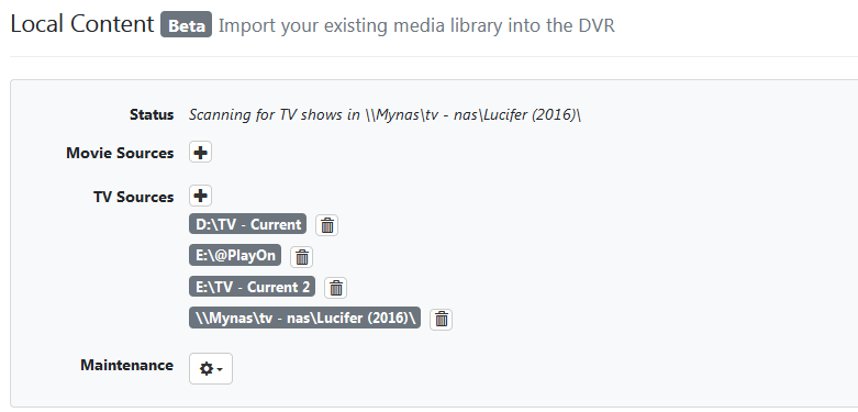 The local content from a Network Share is not being found. But the shows appear in the log files.