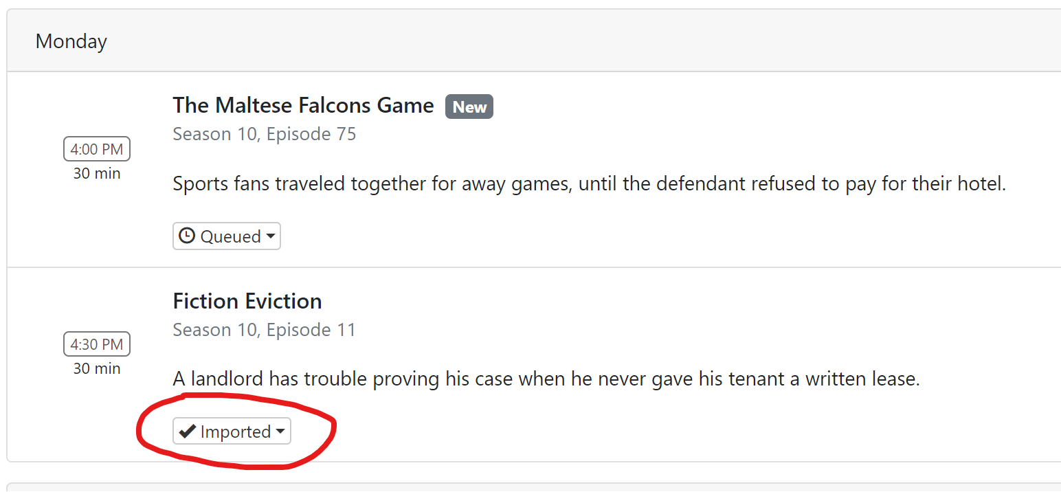 This is cool. Now I don't have to worry about getting duplicate episodes (imported + recorded.)