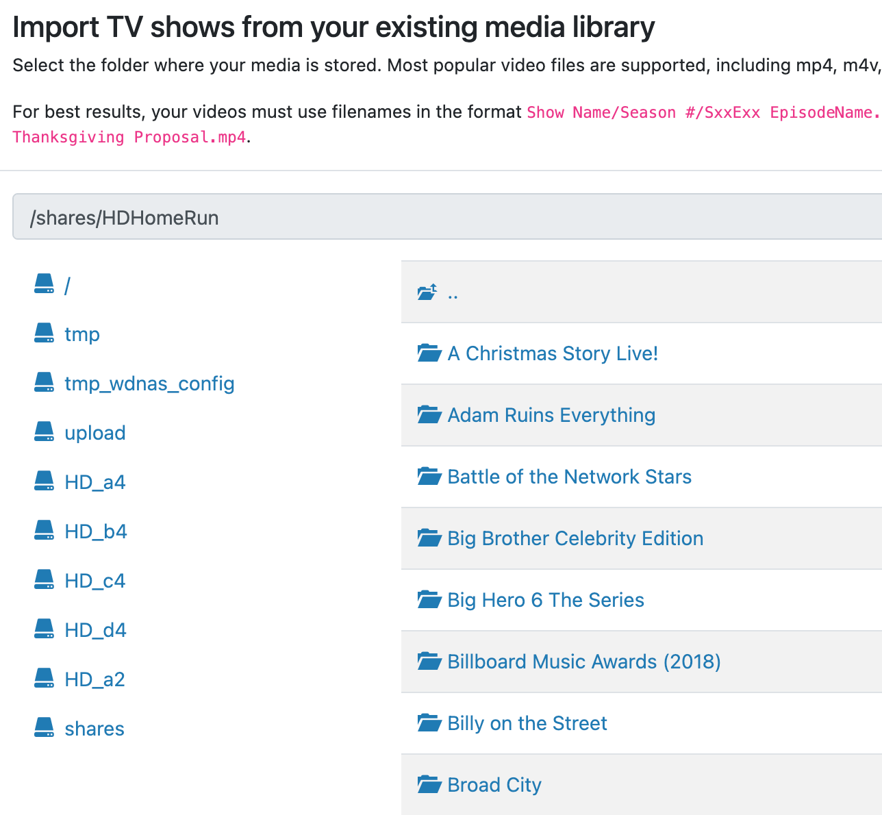 That directory is structured using their default settings like this: /share/HDHomeRun/Name_Of_Show. Episodes of shows are saved within. I realize this doesn't necessarily match the usual structure preferred by Channels, but if I select each show folder individually, it does index them. I just have a lot of shows and doing that one-by-one can take quite some time.