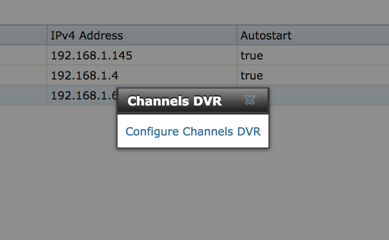 I click the âconfigure channels DVRâ shortcut and it takes me to the ip assigned to the jail.