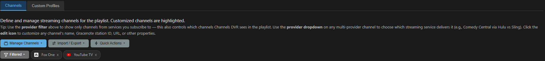 I think the least talked about / used feature for PrismCast seems to be the custom profiles / channels feature that allows you to import/export site-specific profiles as well as channels to go with them, so you can have complete provider packs to simplify extending what's built into PrismCast.