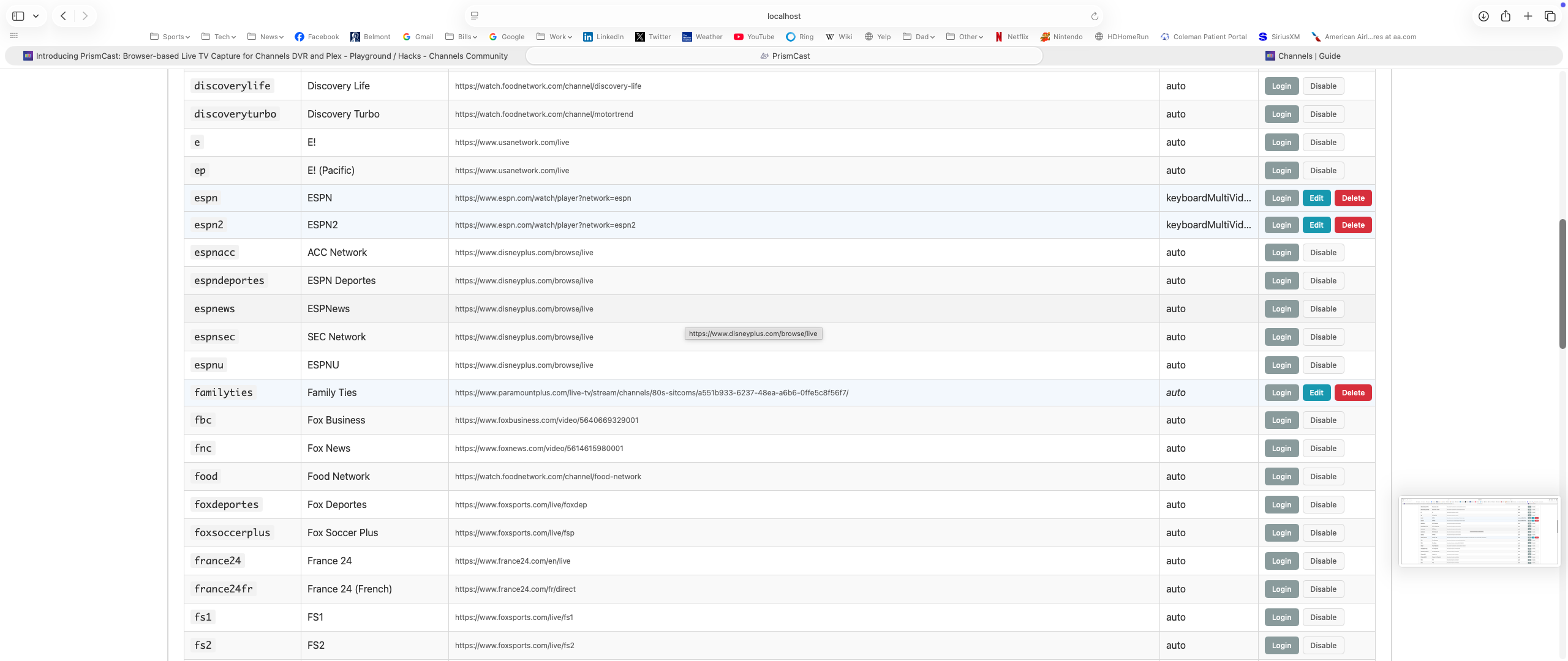 Thank you. Correct, I've logged into espn with my tv provider at espn.com and the tab that opens when i start the channel in CHDVR just goes to a blank page with the address, about.com. I've tested ABC, NBC and USA. they do no have the same issue.