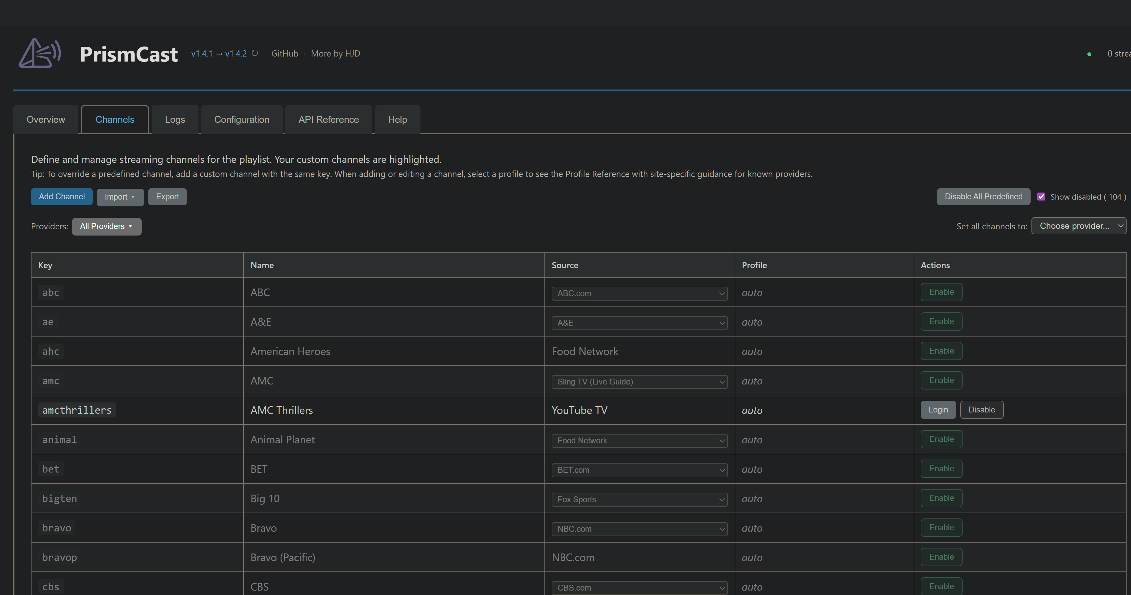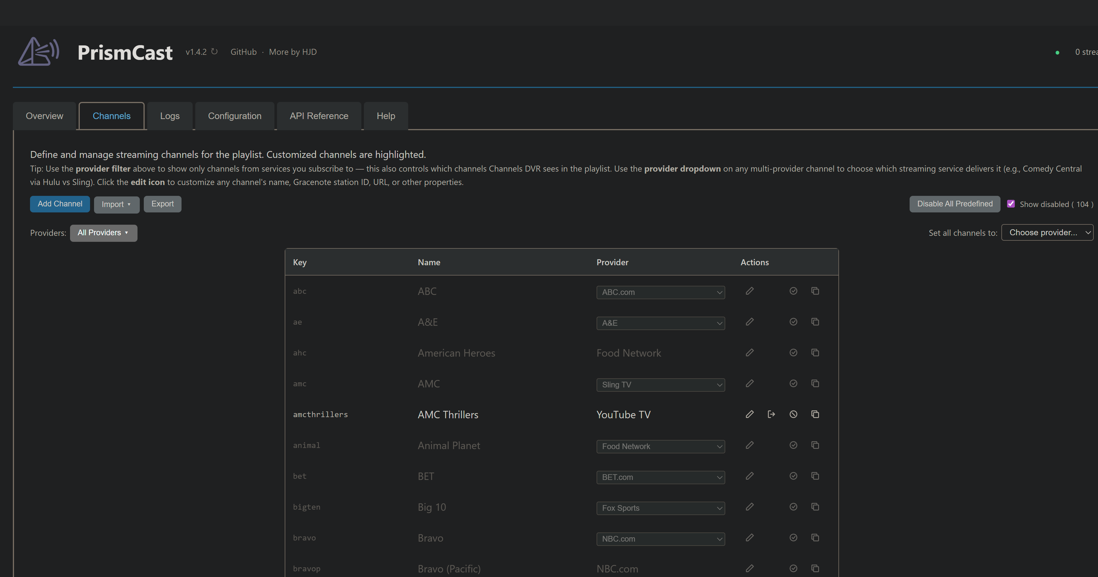 TL;DR: “I don’t like your channels, I want to do it my way” is a valid perspective that’s supported…I’m just being upfront that I’m not going to spend most of my effort focused on that cohort. I have my own point of view, and my software reflects it. For the group of folks that wants to do it differently, I’ve provided tools to enable you to do so - and they’ve existed since the earliest releases of PrismCast, right there in the webUI to import and export channels.