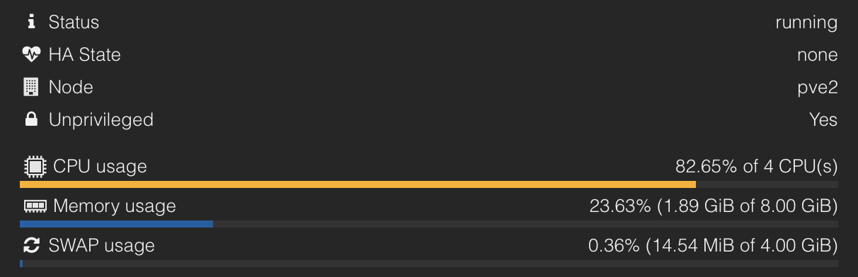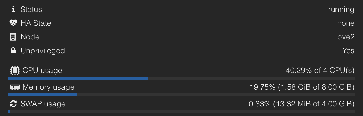 I'm running Docker in an LXC container on a Proxmox host. CPU usage while streaming in my container:
