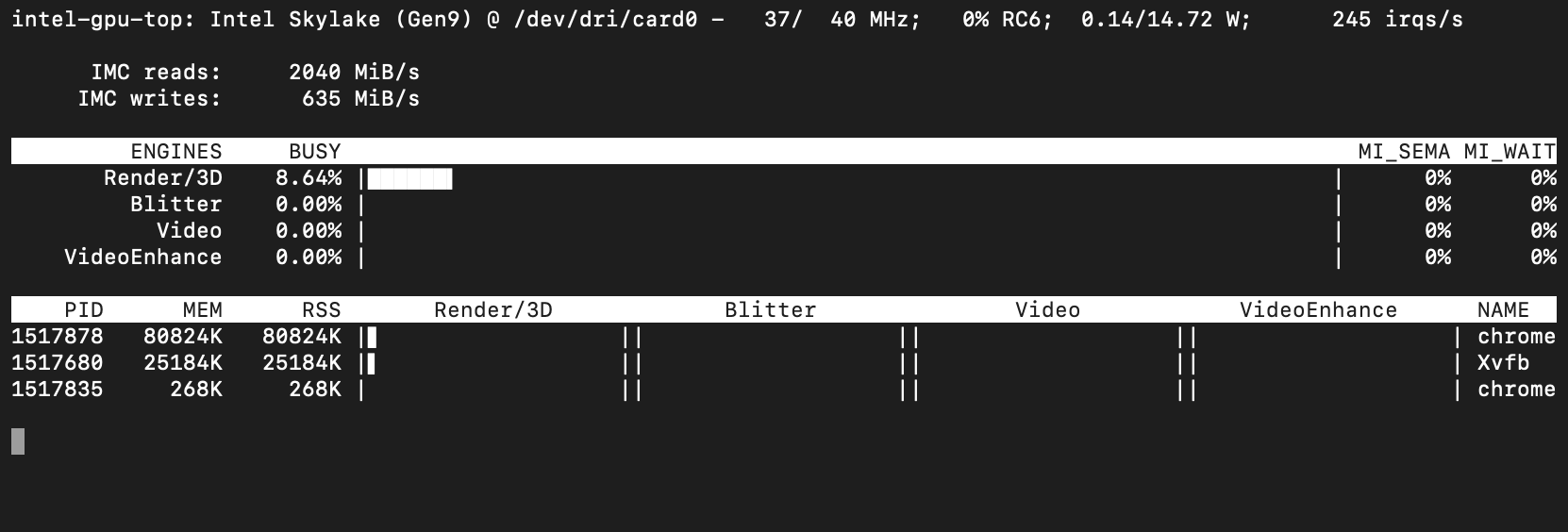 I've actually been down this road before with the linuxserver Chrome image. In fact, I created a version of cc4c that used it. What they did is implement a hardware accelerated version of Xvfb, and when you're actively using noVNC, you have the appearance of improved performance.