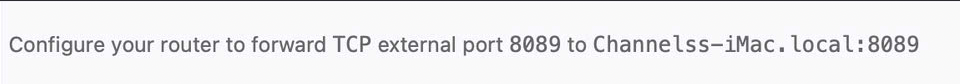 Not sure why, but my server is showing that I am suppose to forward to Channelss-iMac.local:8089. I know the local IP address, but this is the first for Channels to show it like this.
