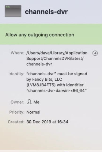 "LittleSnitch is not compatible with Channels DVR and can cause the DVR to stop working after auto-updates."