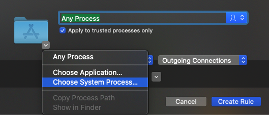 When creating the rule, from the dropdown menu where you pick which application to use, select "Choose System Process..."