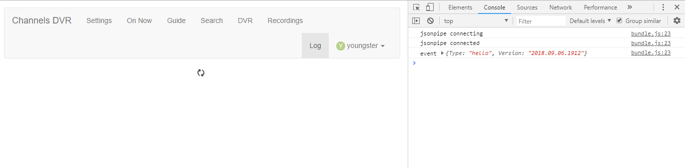 The spinner doesn’t show up if you visit /log directly. Are you using that or /admin/log ?