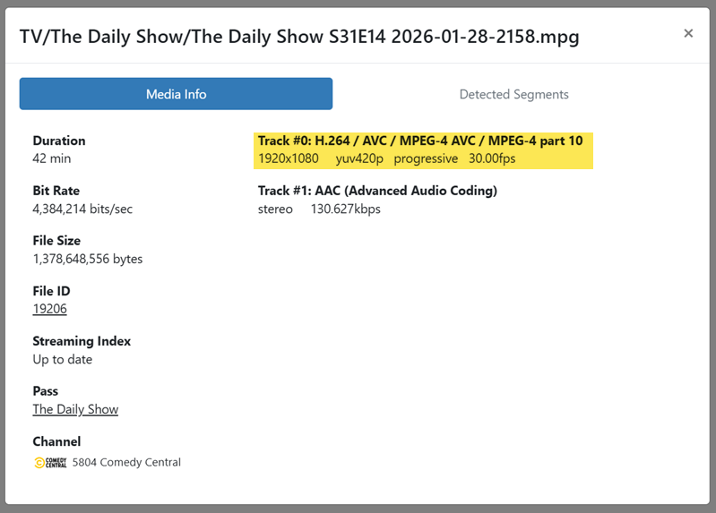 I'd like to get an export of this data using the API, if possible. I have some older recordings in lower res and I thought the database might have the info that I could export to find all of them, but I haven't been able to find this, which makes me think it might only be gathered when asked by "View Details"