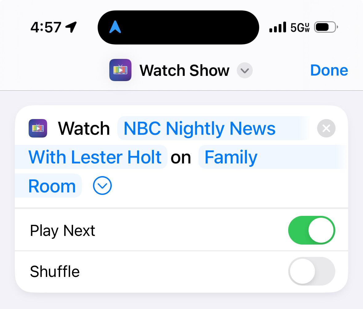 I’m trying to create an iOS shortcut that can be run from a HomePod which will start playback of a recording on a particular Apple TV. An example use case is for my father to be able to say, “Hey Siri, turn on the hockey game”.