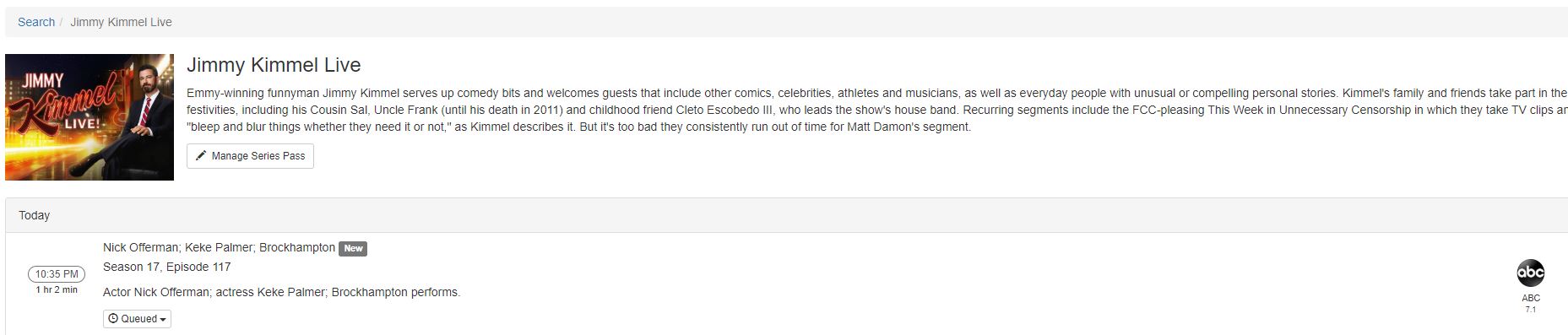 I have Plex scraping my Channels DVR shows that it records and 'Jimmy Kimmel Live' episodes were not scraping correctly so looking a little deeper it appears Channels is incorrectly naming the episodes with the incorrect episode number. Tonight's episode is showing the following: