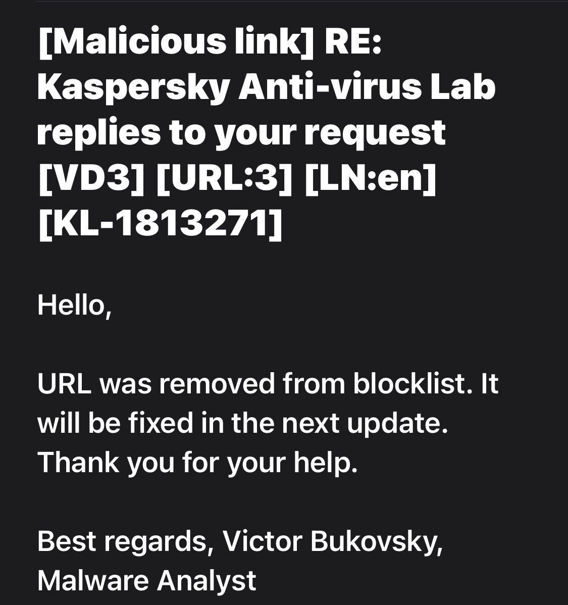 Sorry I didn't clarify which online tools, but yes I did test with VirusTotal (and others) before reaching out to Kaspersky to correct the issue.