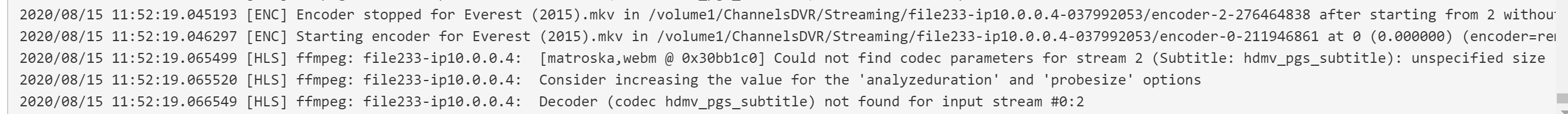 Movies (.mkv) in my library with embedded subtitles are not playing, only the ones with no subtitles (same format) work.