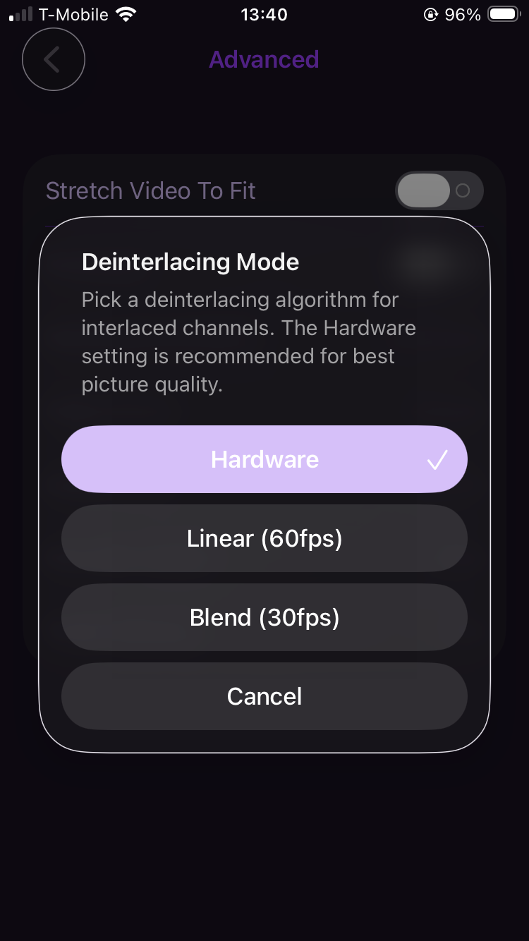 I know where to set the deinterlacing to linear, but I don't have an option to set the FPS. Where is that? FWIW, I'm hosting the Channels DVR server on a Linux Kubuntu box. Going to port 8089 on that box for server side settings, and my Deinterlacer options are Blend, Linear, and Hardware. That's it, no FPS settings.