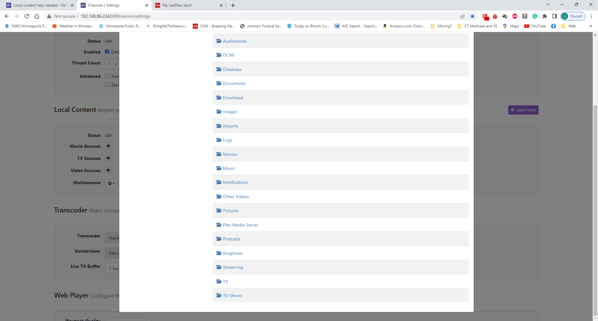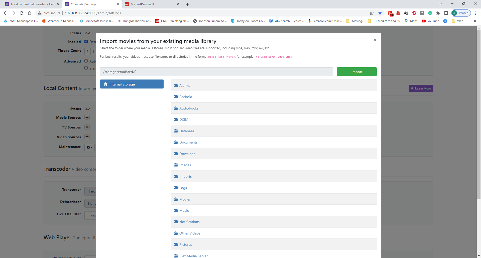 Have tried to "point" the Channels DVR to the files in the Plex folder named TV Shows and have tried copying the movie and tv show files into the respective Imports folder. Nothing has worked and I cannot point to any other storage location folders such as my Windows PC which is on the same network and where I can see and access the storage drive connected to the Shield.
