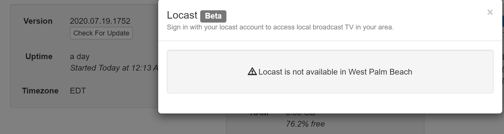 Locast is available in West Palm Beach now, but when trying to add it to Channels DVR I get an error saying it is not available.