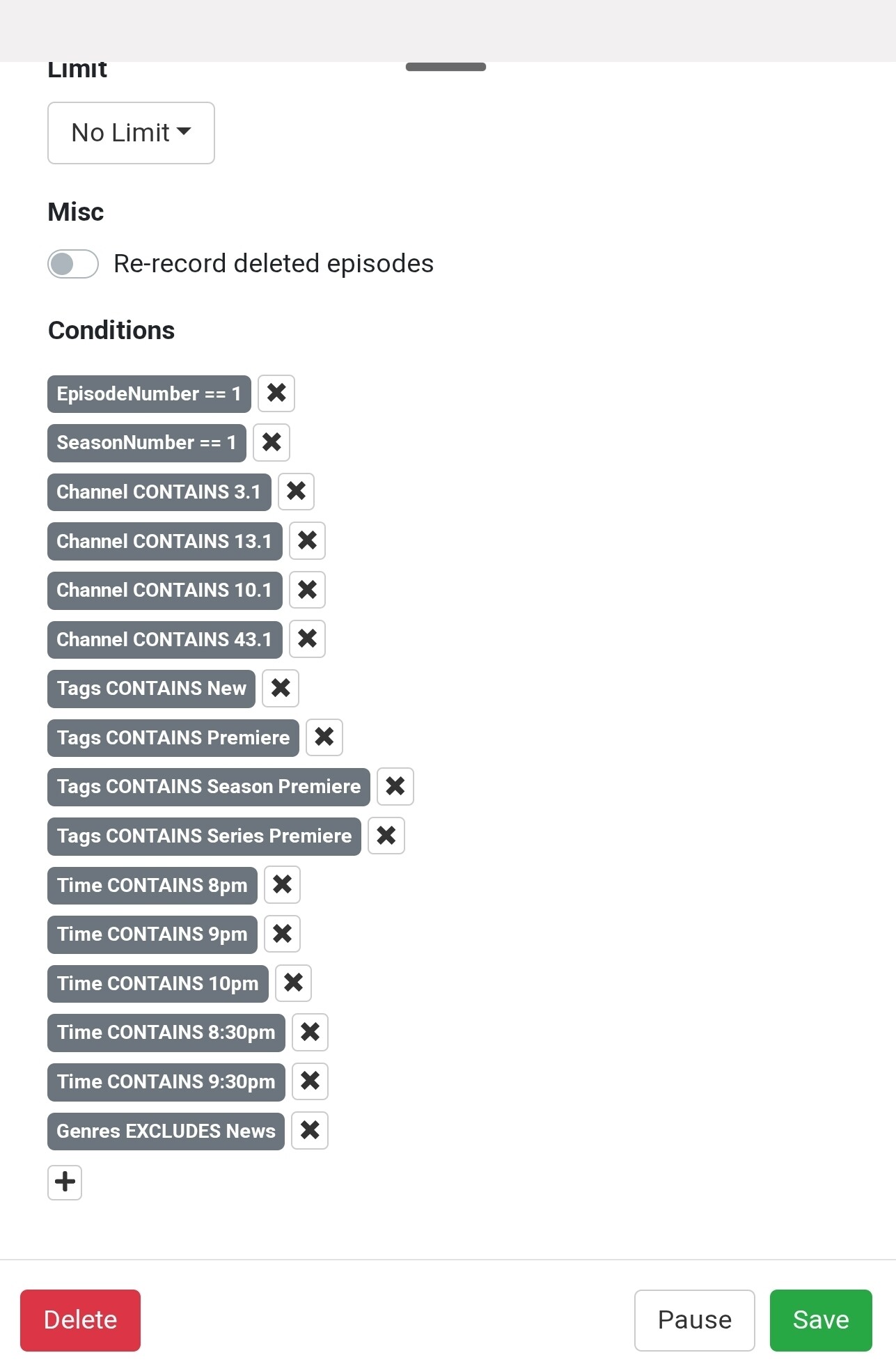I’m trying to recreate a recording setup I previously had with my Dish Network Hopper, and I can’t seem to find a way to do it in Channels.