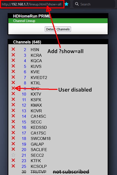 If they're missing on your SD HDHomeRun Prime and you rescanned channels using its web UI, you should ask Silicon Dust Support HDHomeRun Setup & Troubleshooting - Silicondust