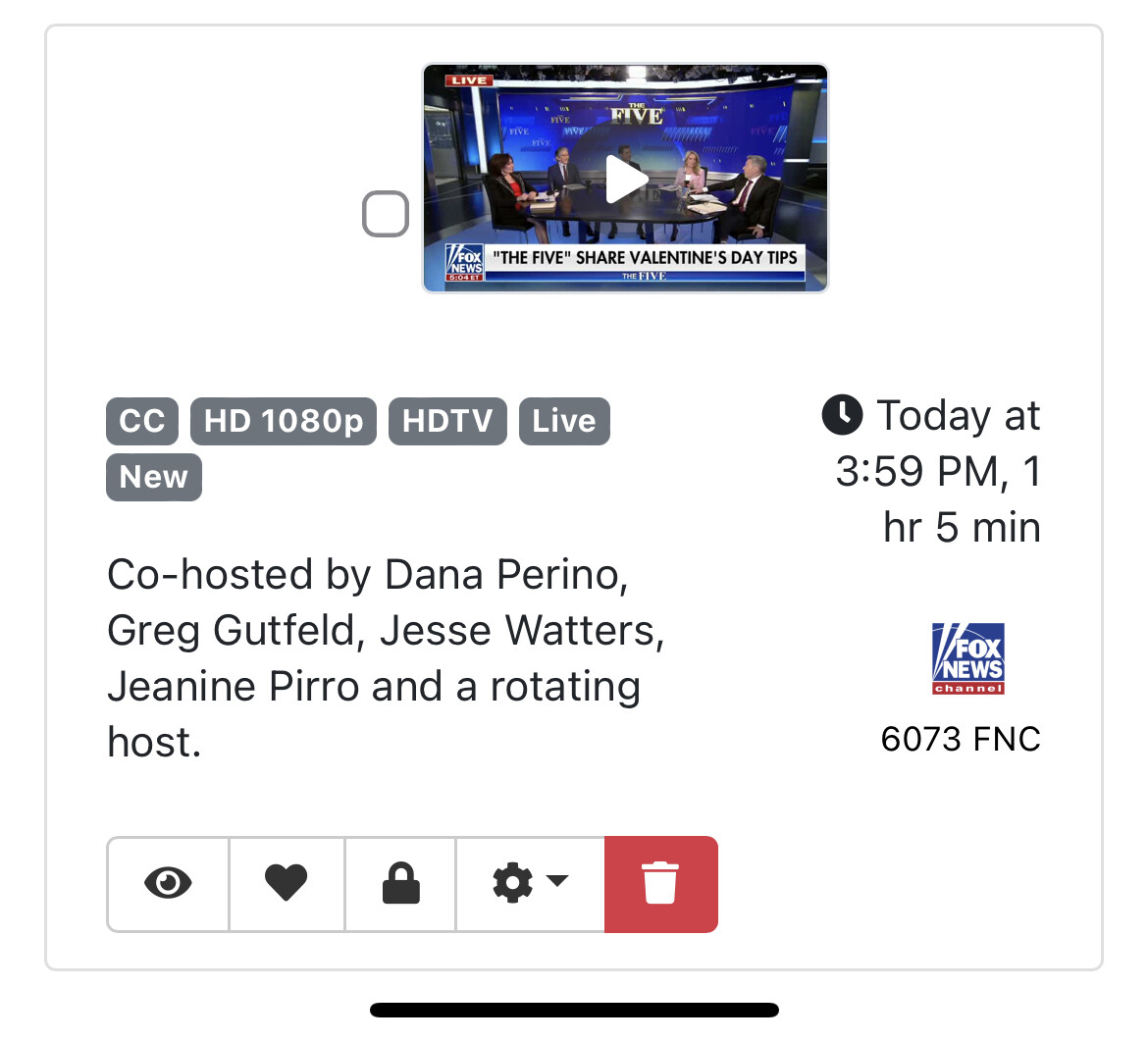 Was recording “The Five” during this time. Recording shows as interrupted, which can be seen in the logs; but the recording has not demonstrated the Lost Connections.