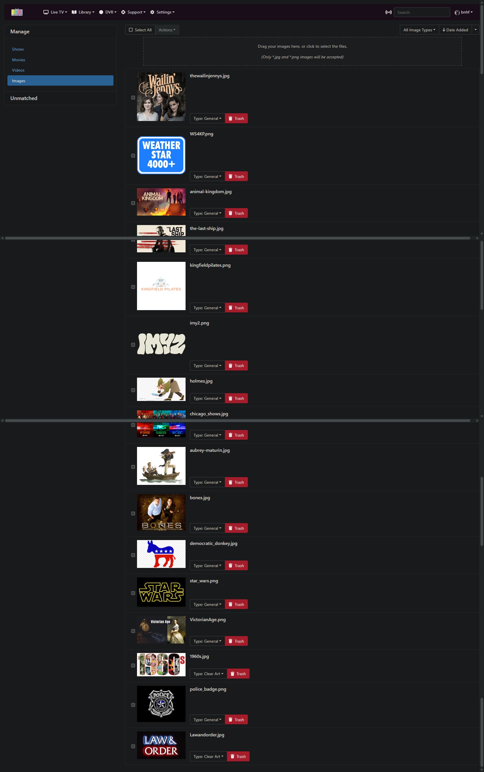 No. In the WebUI under DVR-Manage-Images. I use them for virtual channels mostly though, not sure how they'd work for your situation: