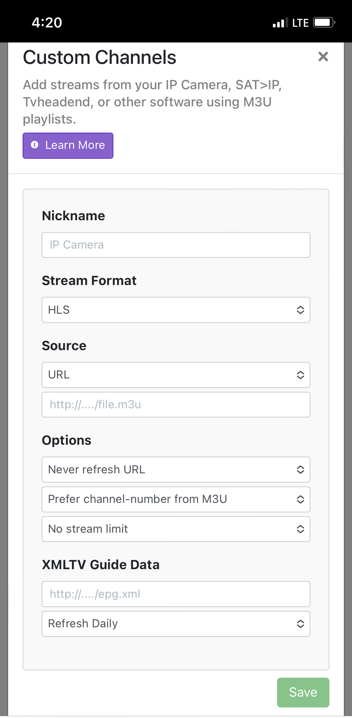 Can someone possibly share a screenshot of a custom channel setup with a channels m3u? I found an earlier post that gave an example of the url but I’m not sure how to incorporate it.