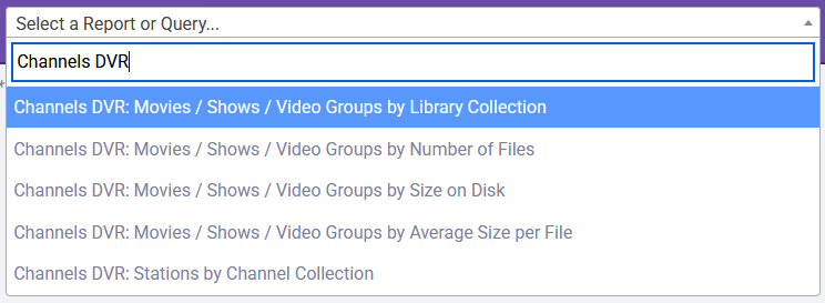 Next, like I said, I've been trying to actually watch stuff instead of being the horrible digital hoarder I am. My biggest goal is to make my library smaller by watching all these programs with a few episodes, especially ones I've recorded or have digital files for as they are just taking up space. As such, I've created a bunch of new reports/queries that make it very easy to get a grip on what exactly I have in Channels.