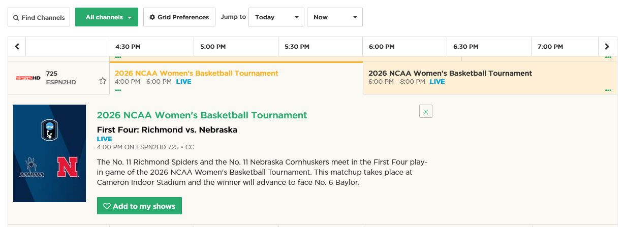 The problem I'm going to have is that I'll have to refresh the guide data each morning. An even greater problem is that ESPN is not updating the women's games so they'll have the same metadata (so far).
