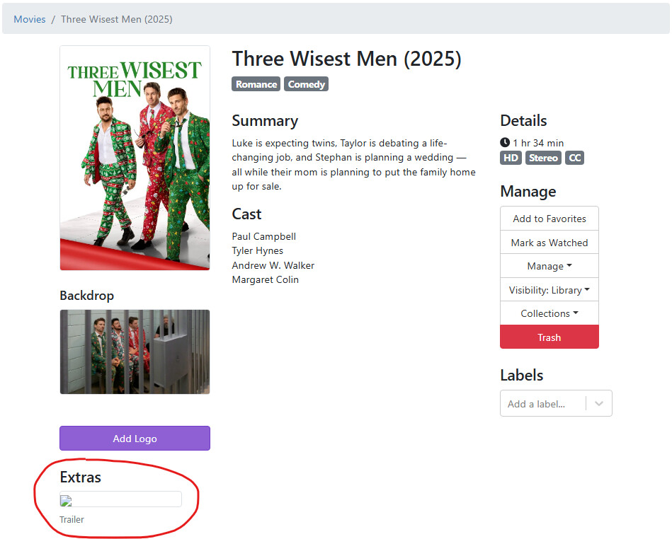 This is an imported movie called "Three Wisest Men" and I want to add "[Extended Cut]" in the name.