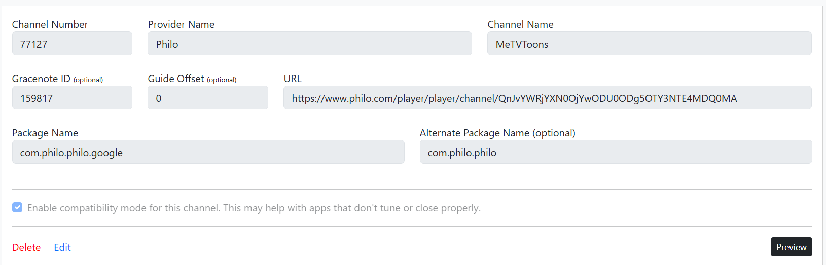 I pulled the URL from watching on the web and swapped out "broadcast" with "channel" in the link. I've also tried using with "broadcast". What happens is that when I tune in while watching concurrently (via Channels through ADBTuner along with watching on the web), it will work. If I close the Philo web stream and try again, usually if I try within 2-3 minutes of closing the Philo web stream, it still works. But after that, when I try and tune in again, I see the below: