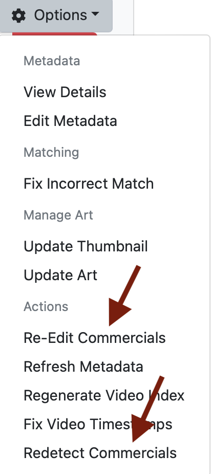 I suggest that for PlayOn that "Re-Edit Commercials" be removed and that "Redetect Commercials" be renamed "Detect Commercials"