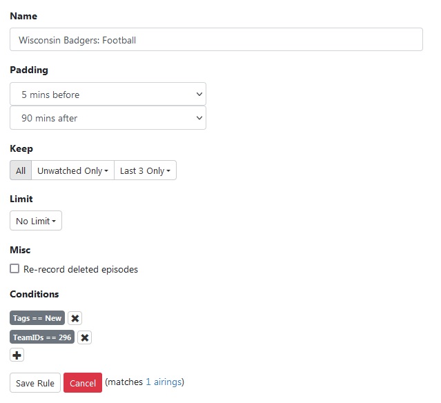 I have a season pass for WI Badgers Football and it failed to record today. Logs submitted. Please advise.