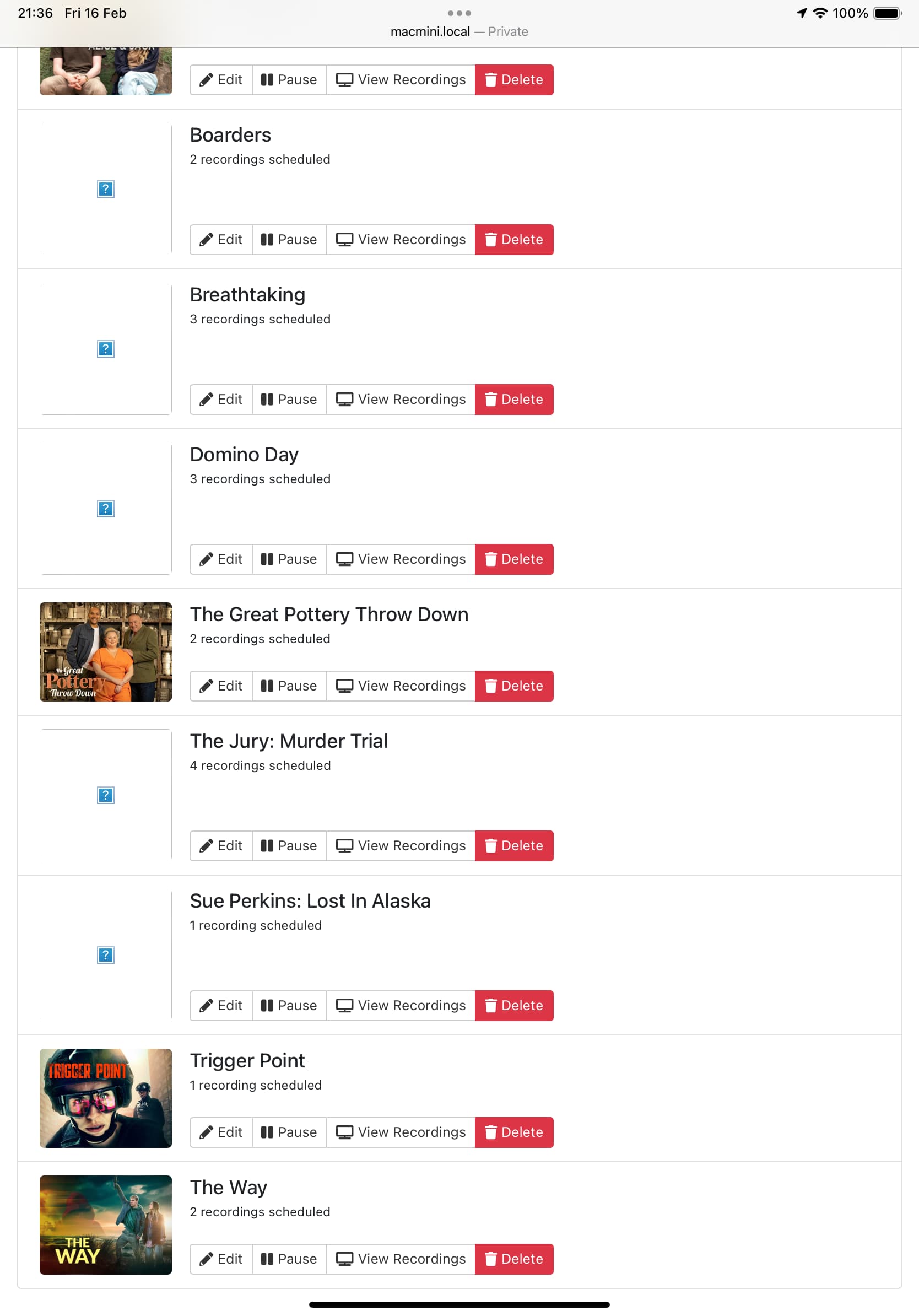 Recently many new HDHomeRun series passes I’ve created have missing series images, instead Channels DVR shows a blue ? The issue is visible in the DVR server web as well in the tvOS, iPad and iPhone Channels apps. Is there anyway to fix this? It seems like Channels is trying to display a generic placeholder image but that’s also missing.