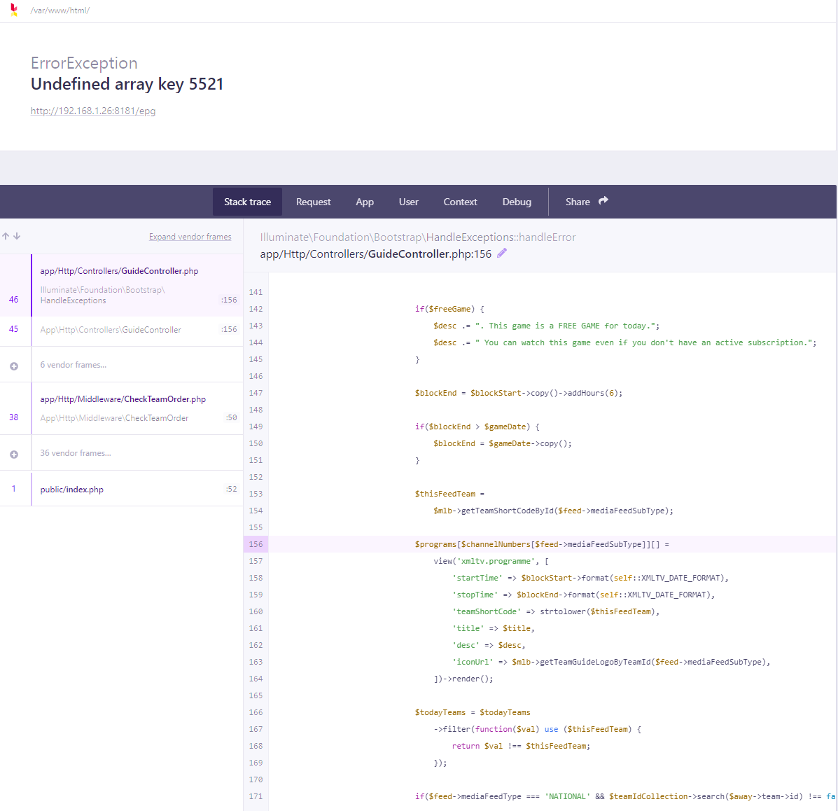 i know the season is almost over, but can anyone else load the EPG from the container in their browser and let me know if they get an error? i had one earlier today and i think i've fixed it, but i want to make sure it's not just an issue on my network before i go pushing more code...