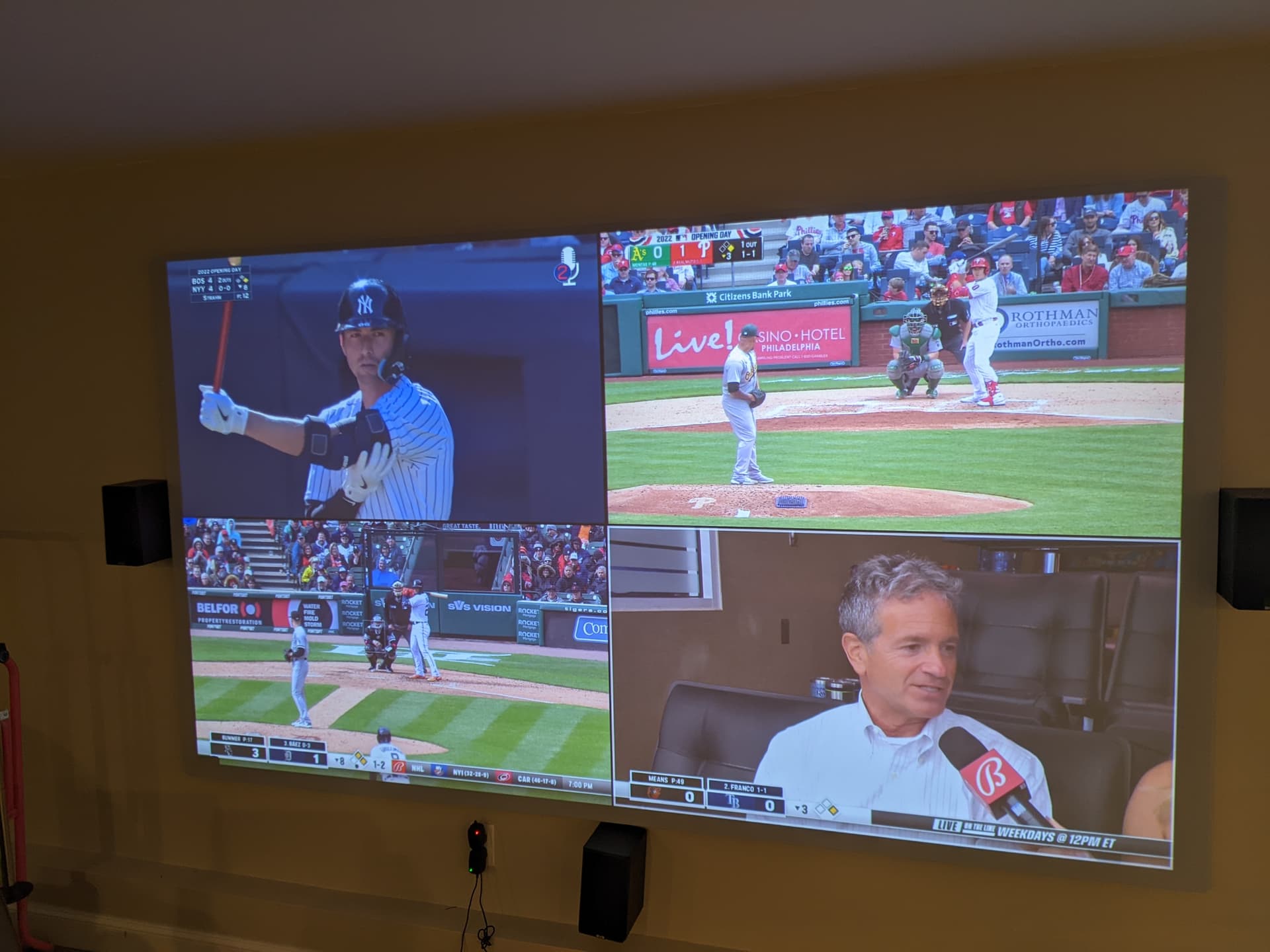 As others have mentioned, this is Tivimate running on an Nvidia Shield to a 120" projector screen. I export an epg and m3u for use in Tivimate. It works flawlessly. Great when there's multiple games on.