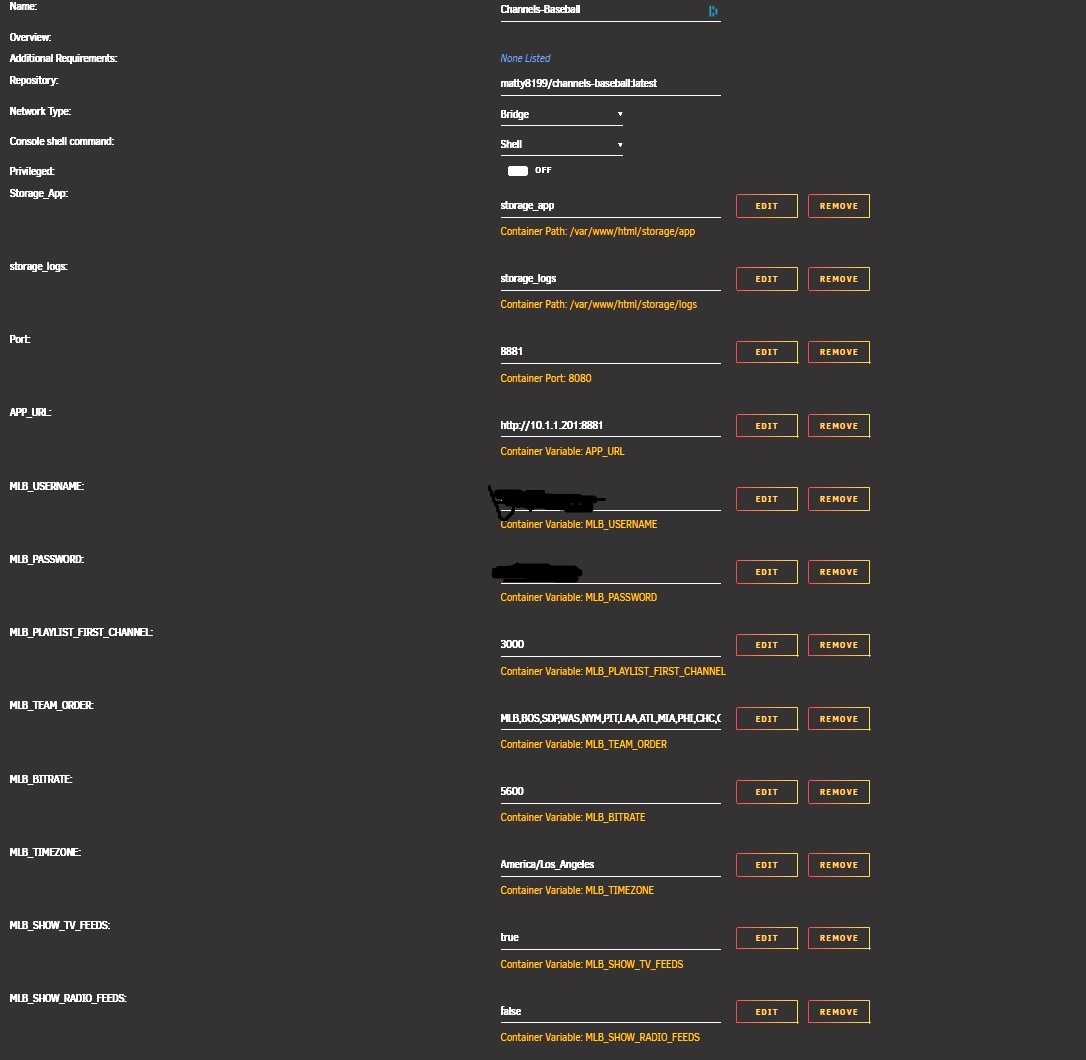 can you run this command on the container and send me the logs via DM? replace channels-baseball with whatever you named your mlb container.