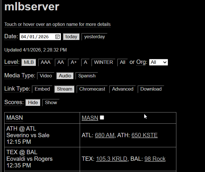 strange question i know - but tony is there a clean way to pull just a team audio stream - trying to set it up so my son can listen to the games on his yoto - it accepts like radio style links but the wbal for orioles is impossible to get that way